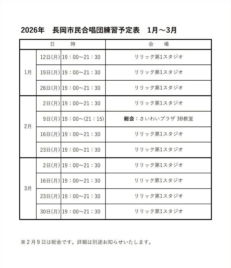練習予定のお知らせ
